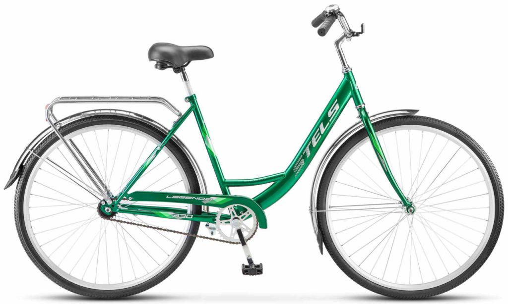 Дорожный велосипед начального уровня без переключения передач. Технические особенности: прочная стальная рама, жесткая стальная вилка, двойные алюминиевые обода, ножной педальный тормоз, защита цепи, длинные крылья, багажник, комфортное седло, звонок, катафоты, подножка. Подходит для прогулочной езды по шоссе и ровным проселочным дорогам. Диаметр колес - 28 дюймов. Вес - 17,31 кг.