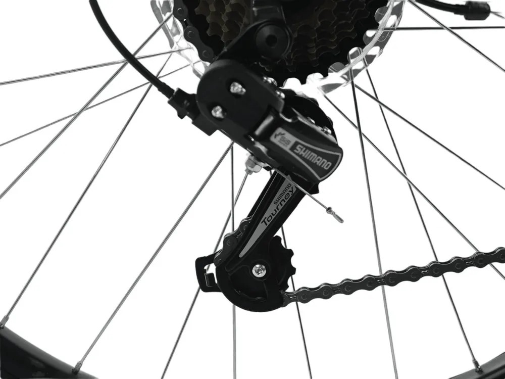 Особенности велосипеда: Амортизационная вилка, Двойные обода, Дисковые тормоза, Защита цепи, Катафоты, Многоскоростной, Подножка, Широкое седло.