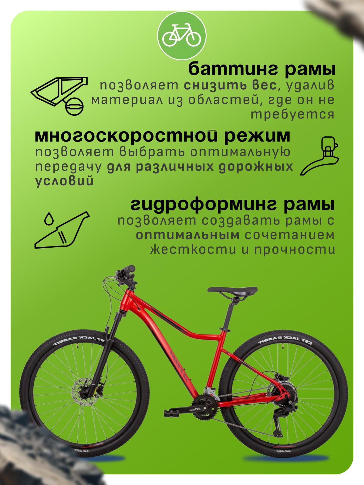 Особенности велосипеда: Алюминиевая рама, Амортизационная вилка, Баттинг рамы, Гидравлический привод тормозов, Гидроформинг рамы, Двойные обода, Дисковые тормоза, Многоскоростной.
