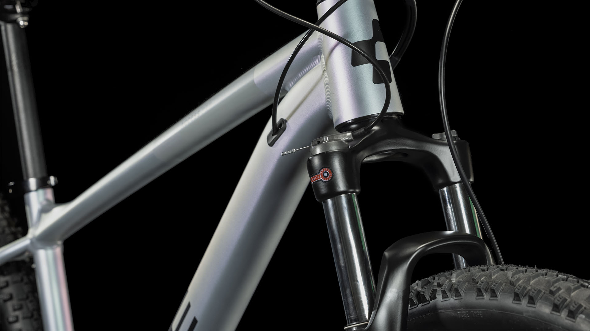 Женский горный велосипед с оборудованием любительского класса Shimano, 18 скоростей. Технические особенности: алюминиевая рама Aluminium Lite, амортизированная вилка SR Suntour XCM Disc, двойные алюминиевые обода CUBE ZX20, дисковые гидравлические тормоза Shimano BR-MT200/UR300. Подходит для активного катания по различным дорогам и пересеченной местности. Диаметр колес - 27,5 дюймов. Вес - 14,3 кг.