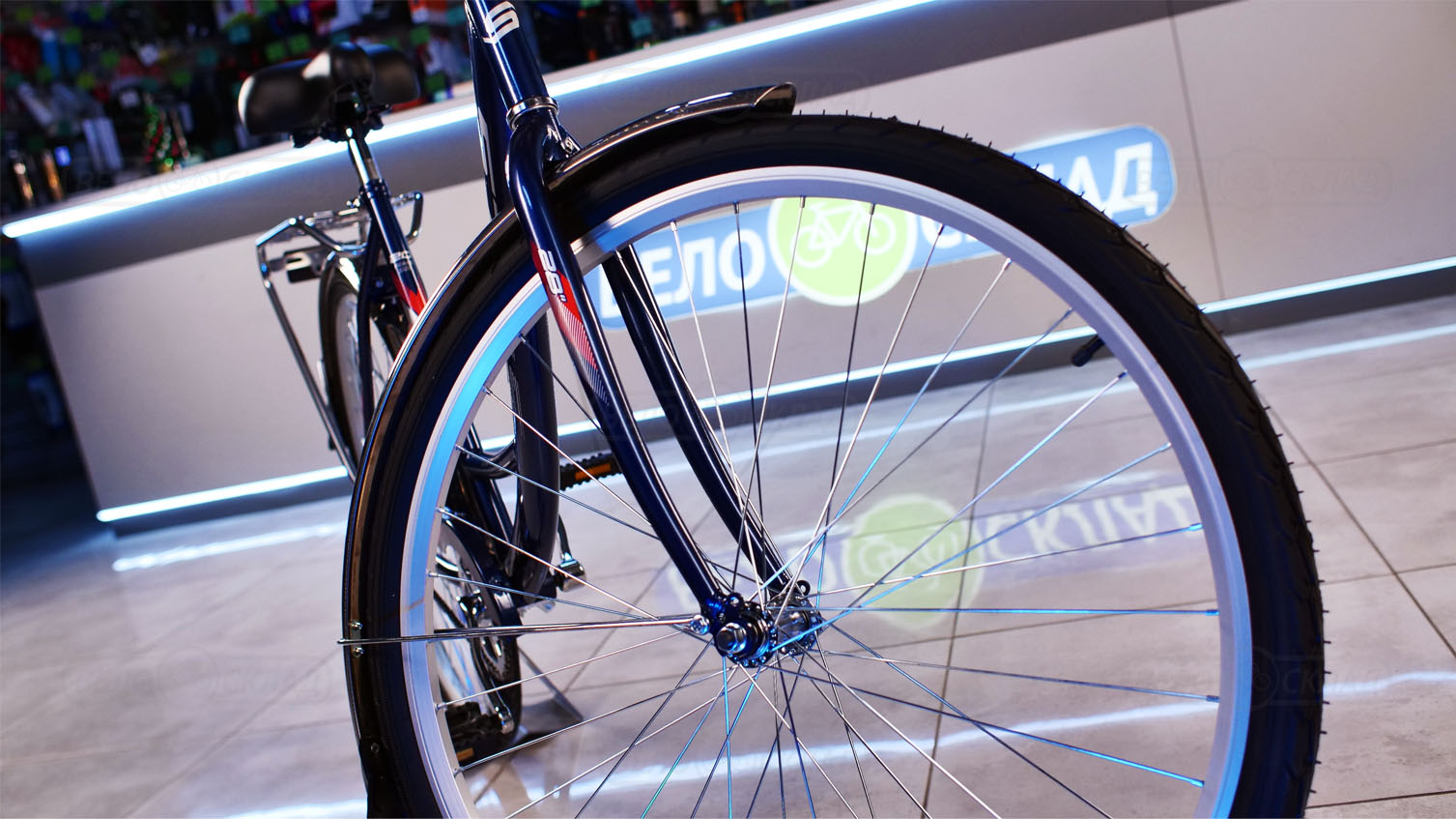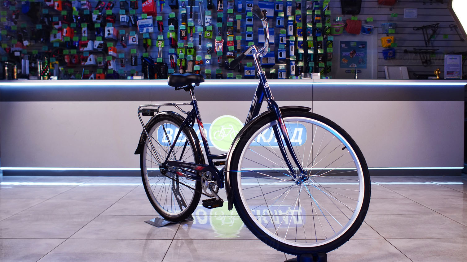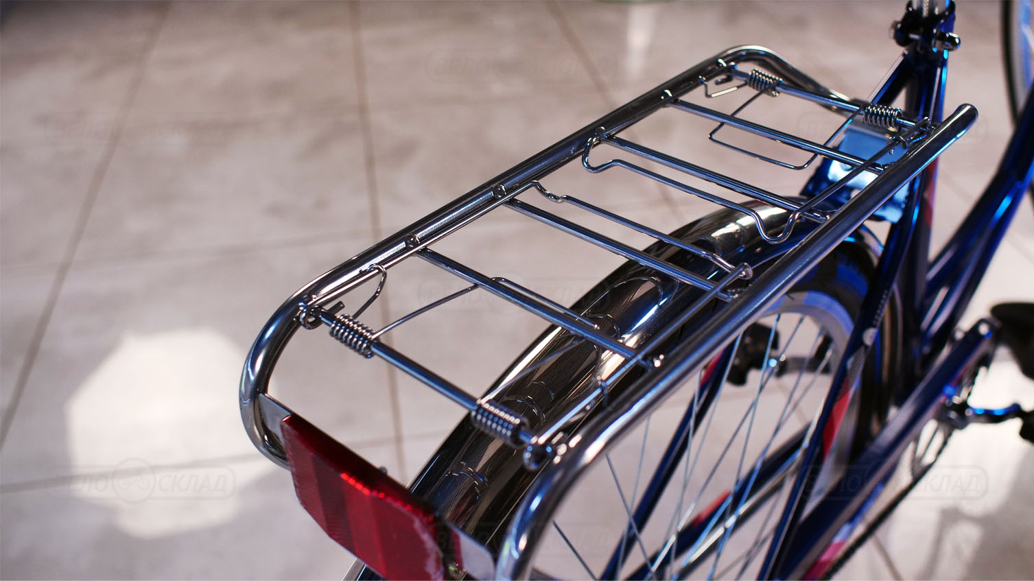 Особенности велосипеда: Двойные обода, Защита цепи, Звонок, Катафоты, Крылья, Ножной тормоз, Подножка, Широкое седло, Багажник.