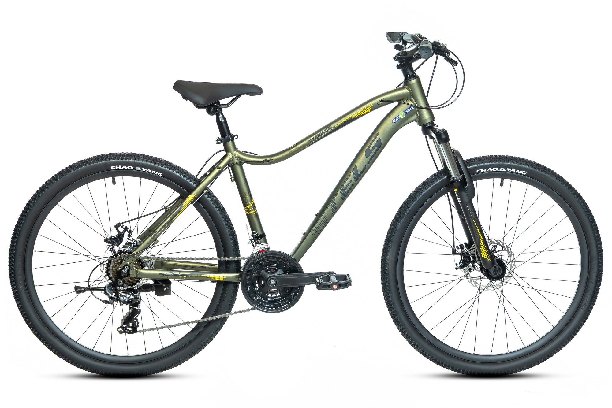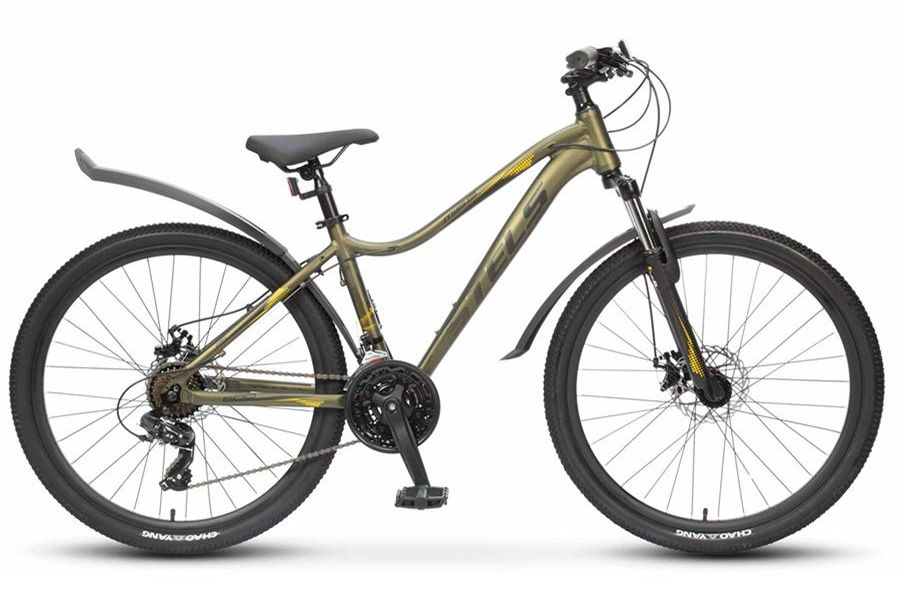 Женский горный велосипед с навесным оборудованием Shimano, 21 скорость. Технические особенности: легкая алюминиевая рама (открытая проводка, кареточный стакан BSA, прямой рулевой стакан, съемный петух), амортизационная вилка (пружинно-эластомерная, ход 60 мм, крепление калипера IS), двойные алюминиевые обода (под AV ниппель), дисковые механические тормоза (роторы 160/160 мм), защита цепи, катафоты, подножка. Подходит для прогулочного катания в городских условиях и по несложным маршрутам в лесу. Диаметр колес - 26 дюймов. Вес - 15,38 кг.