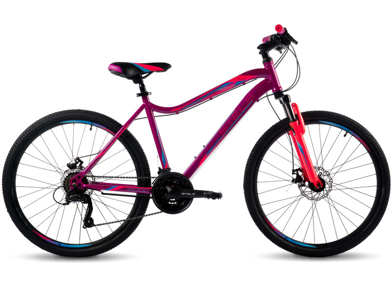 Женский горный велосипед с оборудованием начального класса Shimano (или аналог Microshift ), 21 скорость. Технические особенности: стальная рама Hi-Ten, амортизационная вилка (пружинно-эластомерная, ход 60 мм), двойные алюминиевые обода, дисковые механические тормоза (роторы 160/160 мм). Подходит для прогулочной езды по различным дорогам и пересеченной местности. Диаметр колес - 26 дюймов. Вес - 17,38 кг.