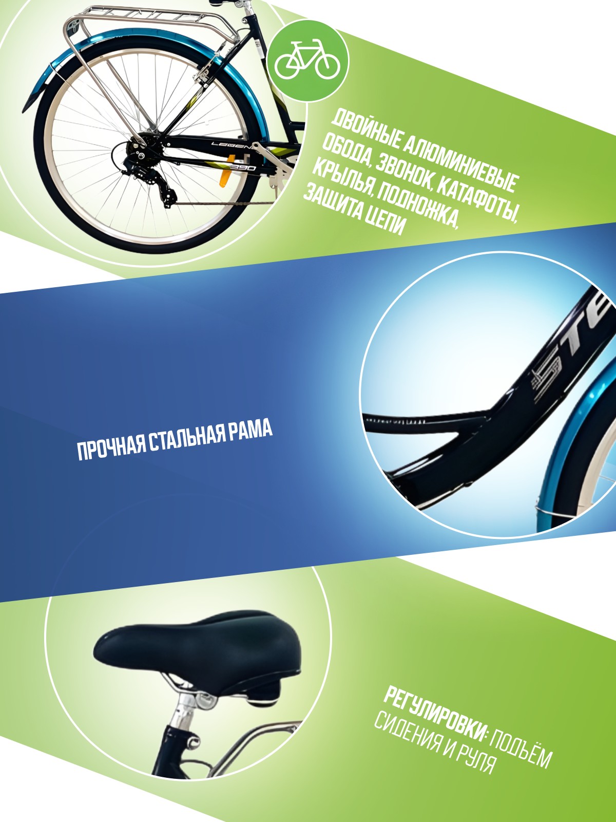 Особенности велосипеда: Багажник, Двойные обода, Защита цепи, Звонок, Катафоты, Крылья, Многоскоростной, Подножка, Широкое седло.