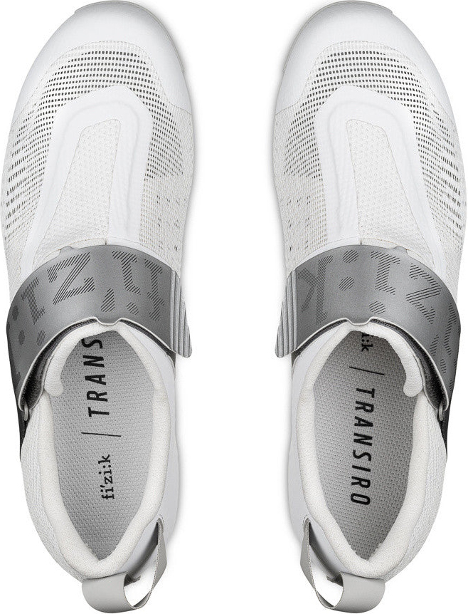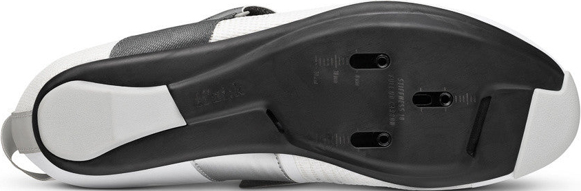 Линейка Transiro от Fizik - это продукты, созданные специально для триатлона, с учетом всех задач и особенностей этого вида спорта. Шоссейные туфли Hydra Aeroweave Carbon - яркий представитель этой линейки. Легкие, дышащие, быстросъемные, эти туфли оснащены легким сетчатым верхом и нейлоновой подошвой очень высокой жесткости, что позволяет сочетать комфорт и эффективность педалирования. С учетом возрастания важности транзитов в триатлоне, будь то спринтерская дистанция или трасса Ironman, Fizik изменили дизайн обуви для соответствия требованиям атлетов. Фиксация на ноге производится с помощью одной широкой ленты велкро с большим круговым обхватом, что позволяет быстро и легко закрепить ступню, а также обеспечивает качественную поддержку. Верх выполнен из мягкой и неупругой крупноячеистой сетчатой ткани Aeroweave, что обеспечивает отличную вентиляцию стопы и позволит избежать избыточной потливости и натирания атлетам, предпочитающим преодоление велосипедной дистанции без носок, без потери эффективности. Подошва из карбона R2 обеспечивает высокий уровень жесткости и оснащена широким воздухозаборником для помощи в терморегуляции. Кроме того, положение шипа на подошве смещено чуть ближе к пятке, что позволяет оптимизировать эффективность педалирования и разгружает коленный сустав.