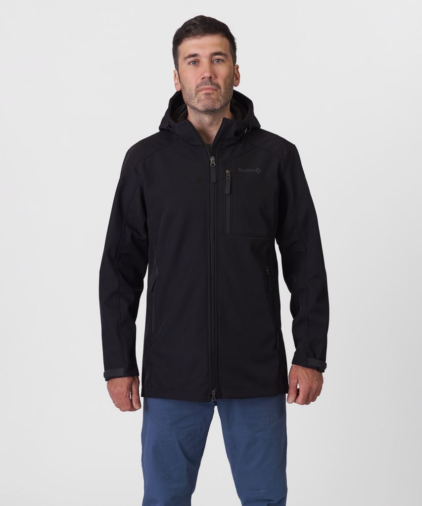 Мужской плащ из трехслойного материала Softshell с мембраной 10 000 мм и водоотталкивающей пропиткой. Куртка обеспечивает защиту от любых осадков и ветра.