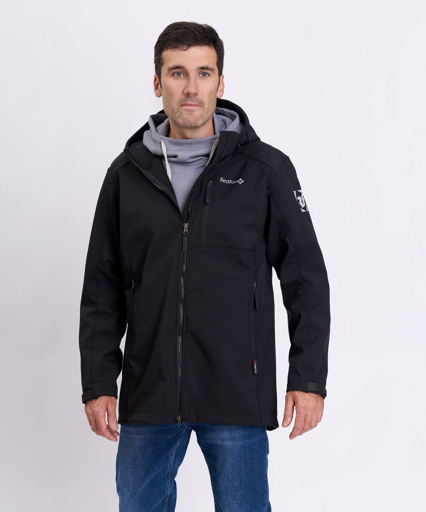 Мужской плащ из трехслойного материала Softshell с мембраной 10 000 мм и водоотталкивающей пропиткой. Куртка обеспечивает защиту от любых осадков и ветра.