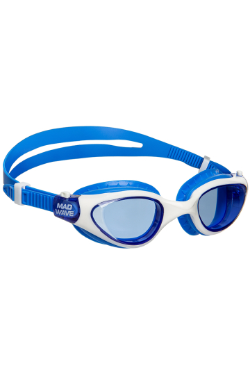 Очки имеют моноблочную конструкцию с гибкой носовой перемычкой, которая самостоятельно адаптируется под индивидуальные особенности строения лица. Двойной силиконовый ремешок регулируется с помощью автоматических клипс по бокам и надежно фиксирует очки на голове. Линзы из поликарбоната с UV-защитой защищают глаза пловца от вредного ультрафиолетового излучения. Покрытие от запотевания Антифог препятствует конденсации влаги на линзах.