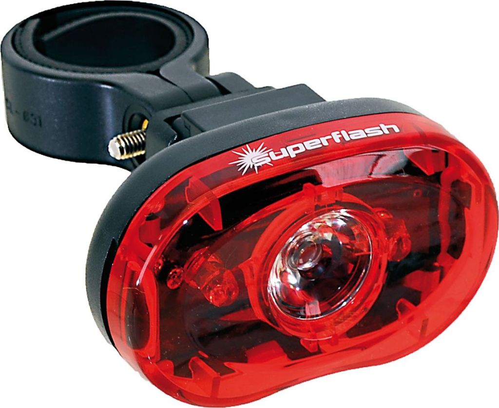 Задний сигнальный фонарь Smart Superflash. Построен на трёх ярких светодиодах, питаемых от двух батареек AAA, входящих в комплект поставки. Крепление к подседельному штырю производится при помощи хомута с проставками под различные диаметры. Сам фонарь имеет универсальную клипсу и может быть закреплен на одежде, рюкзаке и т.д. Маячок работает в 2х режимах свечения (постоянный свет, моргание). Корпус оснащен влагозащитой для поездок под дождем.