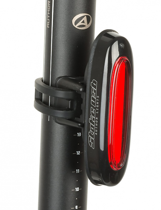 Мощнейший из компактных задних фонарей в линейке производителя. Author A-Stake USB оснащен диодами, построенным по технологии COB LED, чем-то напоминающую светодиодную ленту высокой плотности. В миниатюрном корпусе фонаря скрыт литий-ионный аккумулятор, подзаряжаемый при помощи USB кабеля, входящего в комплект. Крепится маячок при помощи хомута на подседельный штырь, легко снимается при помощи быстросъемной клипсы.