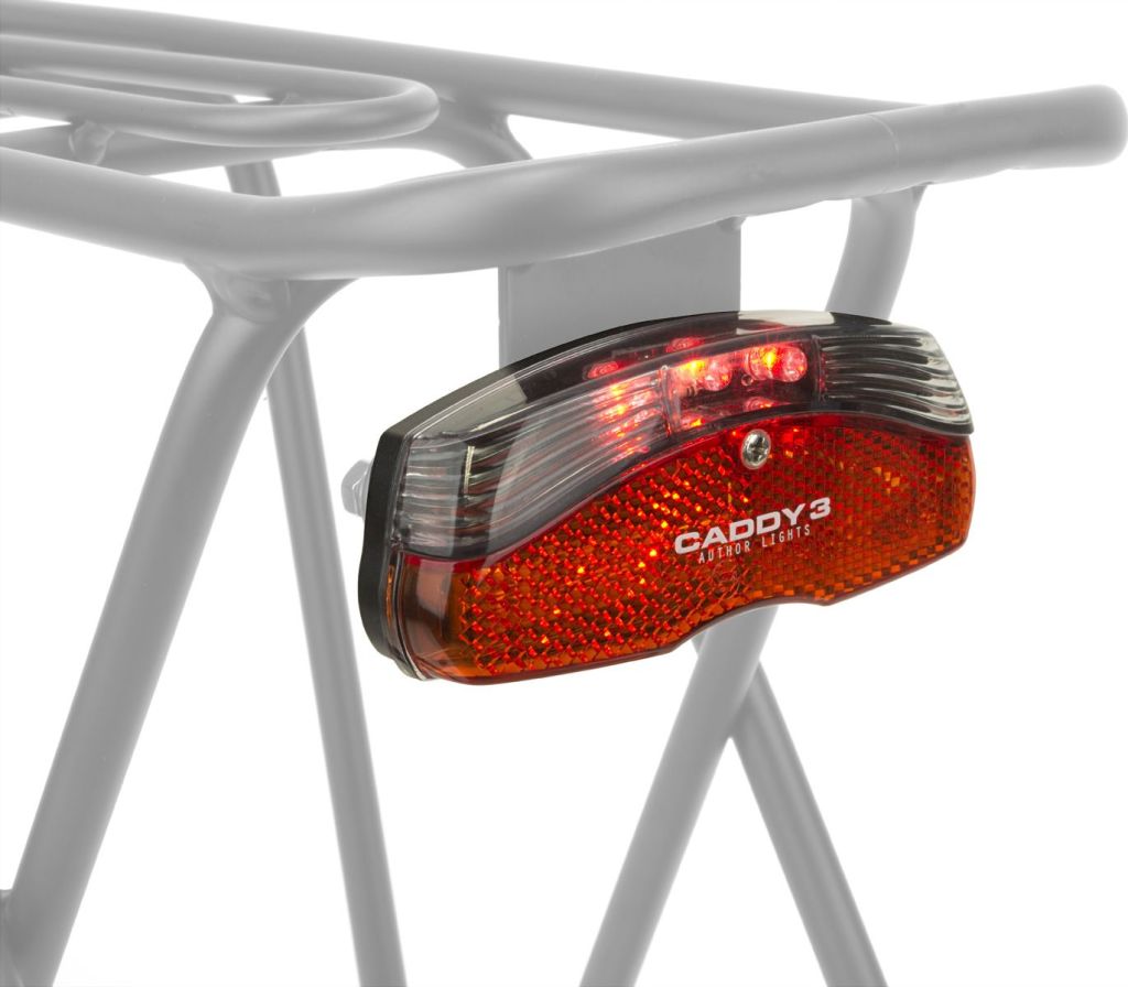 Задний светодиодный фонарь Author A-Caddy для установки на багажник. Питается от пары стандартных AAA батареек, входящих в комплект поставки. Три красных светодиода обладают боковой видимостью вплоть до 180°. Продолжительность непрерывной работы до 50 часов.