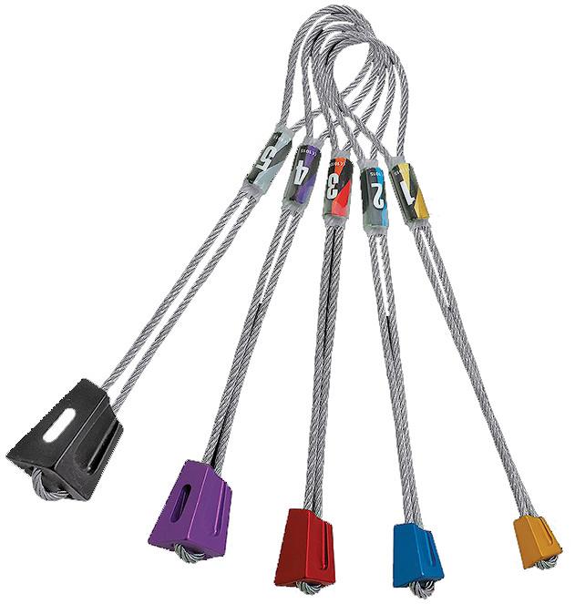 Асимметричные закладки для универсального скалолазания. Выпускаются в 5 размерах. Закладки обладают 4 размерами возможного использования.