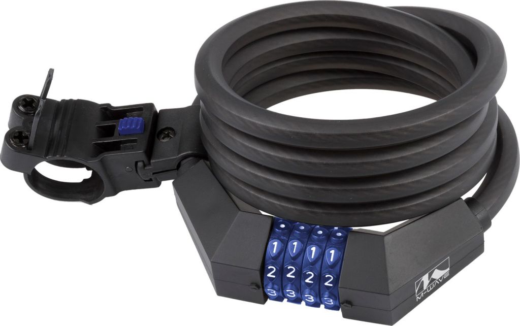 Четырехразрядный кодовый велосипедный замок ACME M-Wave. Обладает схожим уровнем защиты от угона, как и замки-скобы, но при этом гораздо более неприхотлив в плане пристегивания, так как может охватывать крупные объекты. Данный замок создан на троса 12х1500 мм. В целях защиты лкп велосипеда, цепь помещена в полимерную оболочку. Исключается риск потери ключа, так как замок отпирается путем введения пятизначного кода, который владелец задает самостоятельно.