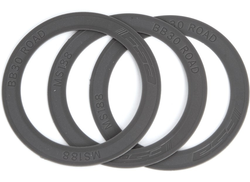 Комплект из трех пластиковых шайб для устранения поперечного люфта систем в каретках BB30, установленных в рамы с нестандартной шириной кареточного стакана.
