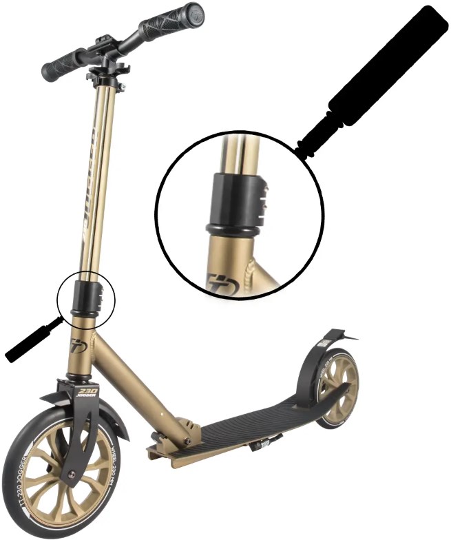 Зажим - хомут ACME для городских самокатов, соединяющий вместе вилку и руль. Изготовлен из алюминия, внутри слева и справа имеет направляющие пазы, фиксация двумя болтами.