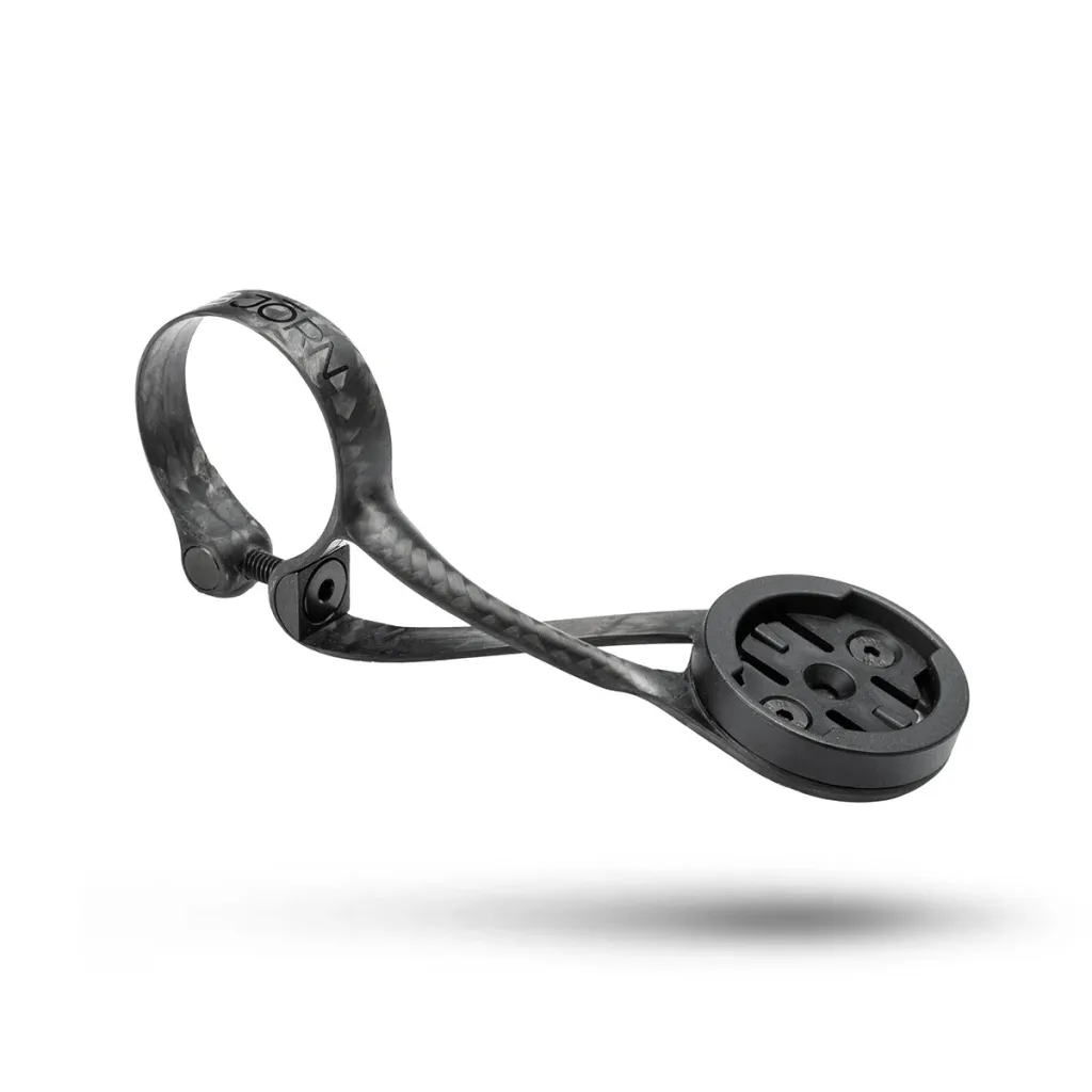 У Lapka классический дизайн с карбоновым кольцевым зажимом, который затягивается одним титановым винтом Grade 5. Кольцевой зажим изготовлен из нескольких слоев карбона и достаточно гибок, чтобы установить крепление компьютера на середину руля.