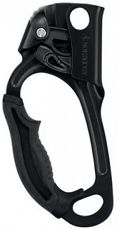 Зажим (жумар) Petzl Ascension с удобной обрезиненной рукояткой и пластиковой накладкой в верхней части обеспечивает надежную фиксацию во время подъема по веревке. Защелка зажима полностью утоплена в корпус, что защищает его от случайного открытия.