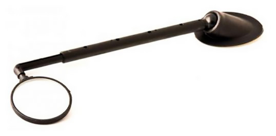 Круглое панорамное небьющееся зеркало на шлем. Присутствует возможность регулировки за счет телескопического кронштейна. Недорогой, но весьма эффективный повысить обзор и уровень безопасности при езде по дорогам.