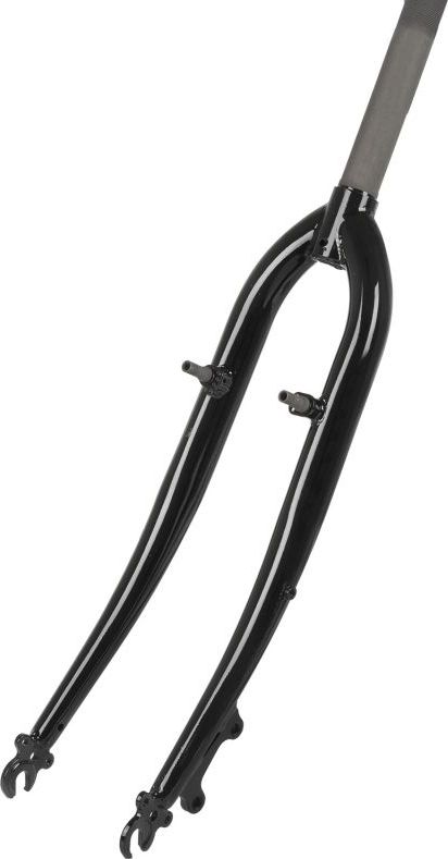 Стальная вилка ACME с резьбовым штоком 1-1/8". Обладает базовыми виброгасящими свойствами, благодаря материалу изготовления. Имеются брейкбоссы под v-brake или кантиливерные тормоза, а также крепление дискового тормоза стандарта IS. Также присутствуют проушины на дропаутах для установки полнопрофильного крыла. С внешних сторон ног имеются бонки для монтажа туристических багажников.