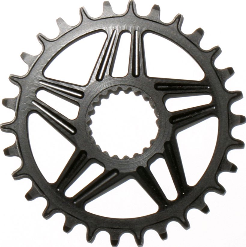 Звезда с зубцами переменной ширины. Оптимизированные профиль и толщина зуба для лучшего удержания цепи. Изготовлена путем фрезерования из высокопрочного алюминия марки 7075 Т6. Для систем Shimano с типом крепления звезд Direct Mount. Модификация со смещением 6 мм для задних втулок шириной (o.l.d.) 135 / 142 мм. От направляющих цепи можно отказаться даже в ДХ, проверено.
