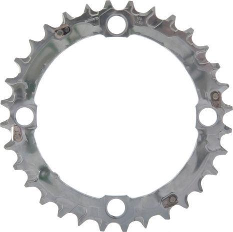 Звезда Shimano Deore FC-M510 для систем Shimano и совместимых с посадочным диаметром BCD 104 мм. Обратная сторона оснащена пиковыми рампами и пинами для улучшения качества и скорости переключения передач.