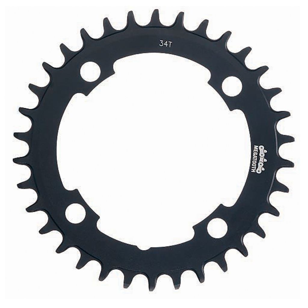 Звезда со стандартным симметричным посадочным креплением (BCD 104 мм) к МТБ системам. Данная звезда позволяет конвертировать трансмиссии с несколькими ведущими звездами и кассетами на 9-11 скоростей в схему с одной ведущей звездой. Зубья увеличенной длины (технология Megatooth) и их чередующаяся ширина не дают цепи спадать даже при сильной тряске.