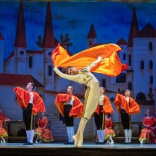На площади в Барселоне у таверны Лоренцо веселится народ. Здесь и задорная Китри, дочь Лоренцо, и влюбленный в нее цирюльник Базиль. Но Лоренцо не угоден бедный жених. Куда более ему по сердцу богатый дворянин Гамаш, который также не прочь жениться на Китри. Но такого замужества девушка не желает. Они с Базилем решают бежать. Толпа приветствует уличную танцовщицу и тореадора Эспаду. Общее удивление вызывает появление рыцаря Дон Кихота. Путешественника приглашают к столу. Девушки потешаются над стариком Санчо Панса. Дон Кихот поражен красотой Китри. Не она ли в образе прекрасной Дульсинеи являлась ему в грезах? Он по-рыцарски ухаживает за ней, и Китри преображается в Дульсинею. За ней, ускользающей с площади, устремляется Дон Кихот. Его сопровождает преданный Санчо Панса....