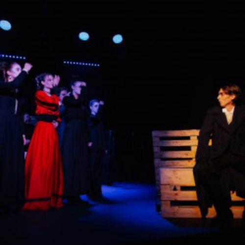 Хотим поставить акцент на декорациях. Одним из ключевых инструментов антуража являются паллеты. Простые деревянные паллеты. Но в нашем спектакле они несут множество смыслов и представляют из себя абсолютно всё, начиная с обыкновенного забора во дворе, заканчивая символом развала общества. Например, вся сцена суда происходит в пространстве с хаотично разбросанными паллетами, словно на обломках былой славы.