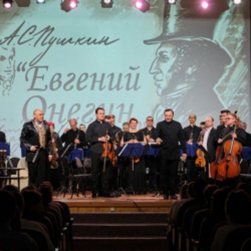 Роман с оркестром «Евгений Онегин» — литературно-музыкальный спектакль с графикой. Проект Томской филармонии для современных школьников, то есть для тех, кто читал Пушкина давно или вообще не знаком с романом.
