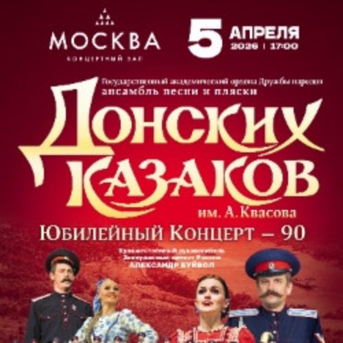 Юбилейный концерт в честь 90-летия Ансамбля Донских Казаков состоится в день рождения Ансамбля — 5 апреля 2026 в 17-00 в концертном зале «Москва» в рамках музыкального проекта «Имена на все времена».