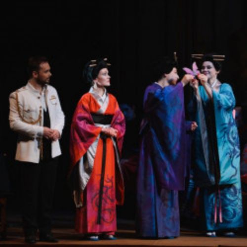 Несмотря на то что действие спектакля перенесено из Японии рубежа XIX—ХХ веков в Америку 1920-х, постановщики нашли остроумный способ сохранить японский колорит истории.