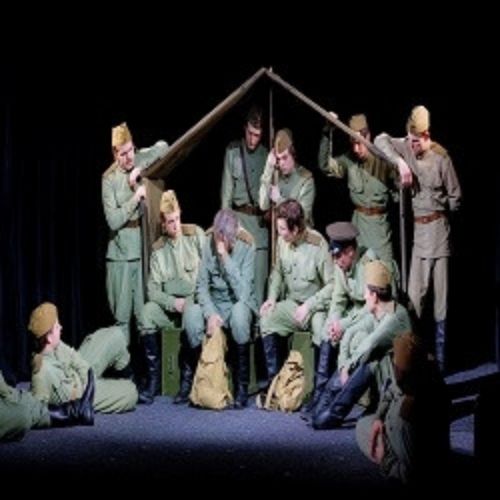 Декорация-трансформер становится то гатью, по которой через болота шагает русский солдат, то бортом грузовика, то единым щитом, спасающим жизни бойцов... Под звуки седьмой симфонии Шостаковича бравый солдат Тёркин появится на сцене в исполнении разных актёров. Потому что Тёркин — это лучшая часть каждого воина.