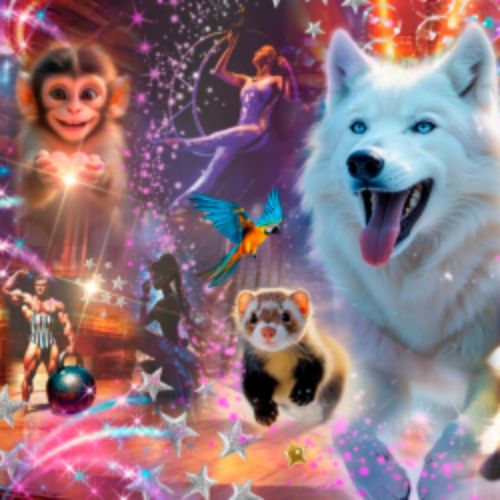 В программе: американский енот, озорные хорьки, северные хаски, белый волк, непоседа зеленая макака, эффектный пластический этюд, жонгляж, игра с хлыстами гутаперчивой циганочки, фантастический эквилибр на катушках, артисты оригинального жанра, самый смешной клоун и многое другое...