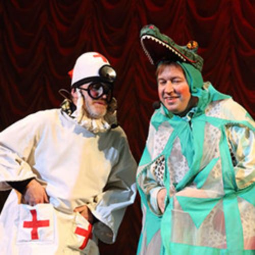 В сказках Чуковского столько животных, птиц и других существ, что не хватит артистов в театре, чтобы всех их сыграть. Поэтому мы прямо на глазах у зрителей переодеваемся в костюмы персонажей сказок Чуковского. А костюмы эти растут у нас на сцене на чудо-дереве. Это — спектакль-клоунада, а мы все — клоуны. Зрители говорят, что наш Айболит смешной, а Бармалей вовсе не страшный, а вполне симпатичный разбойник. Если вы знаете песенку «Чижик-пыжик», то из зала поможете нам спеть маленькую фугу на эту тему («Тараканище»).