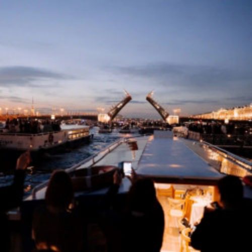 Отправиться по уникальному маршруту к трём разводным мостам от Петроградской стороны на комфортабельном однопалубном теплоходе с реки Карповки...