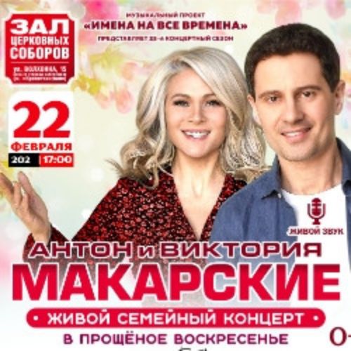 22 февраля 2026 в воскресный день в 17-00 в красивейшем столичном Зале Церковных Соборовсостоится долгожданный живой семейный концерт Антона и Виктории Макарских вдень Прощёного воскресенья.