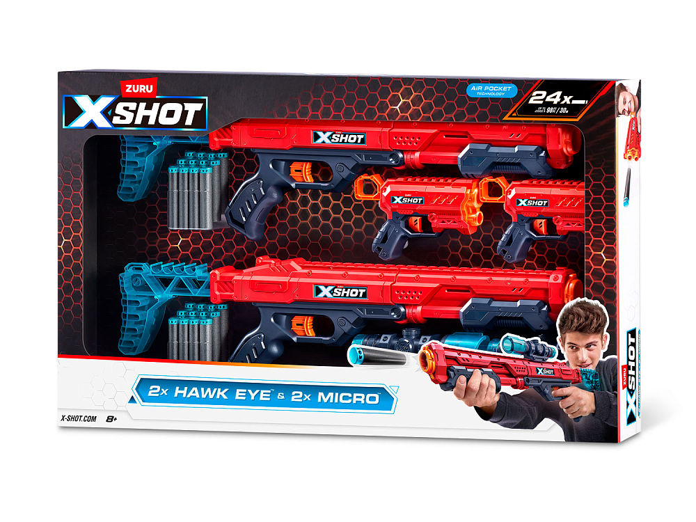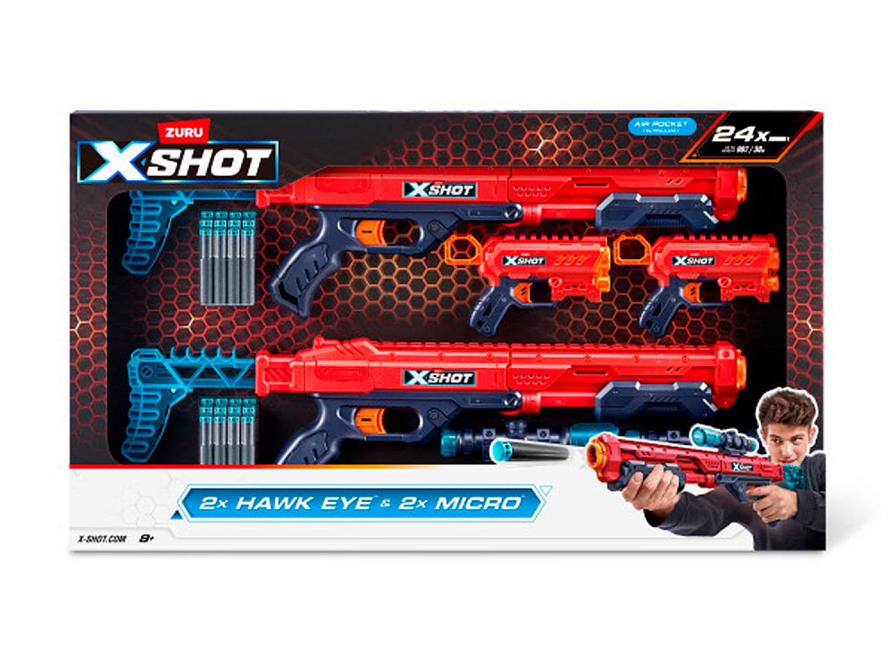 36734 Игровой набор ZURU X-Shot EXCEL: Комбо (бластеры 2х Хоукай + 2х Микро v2,0, 24 снаряда)