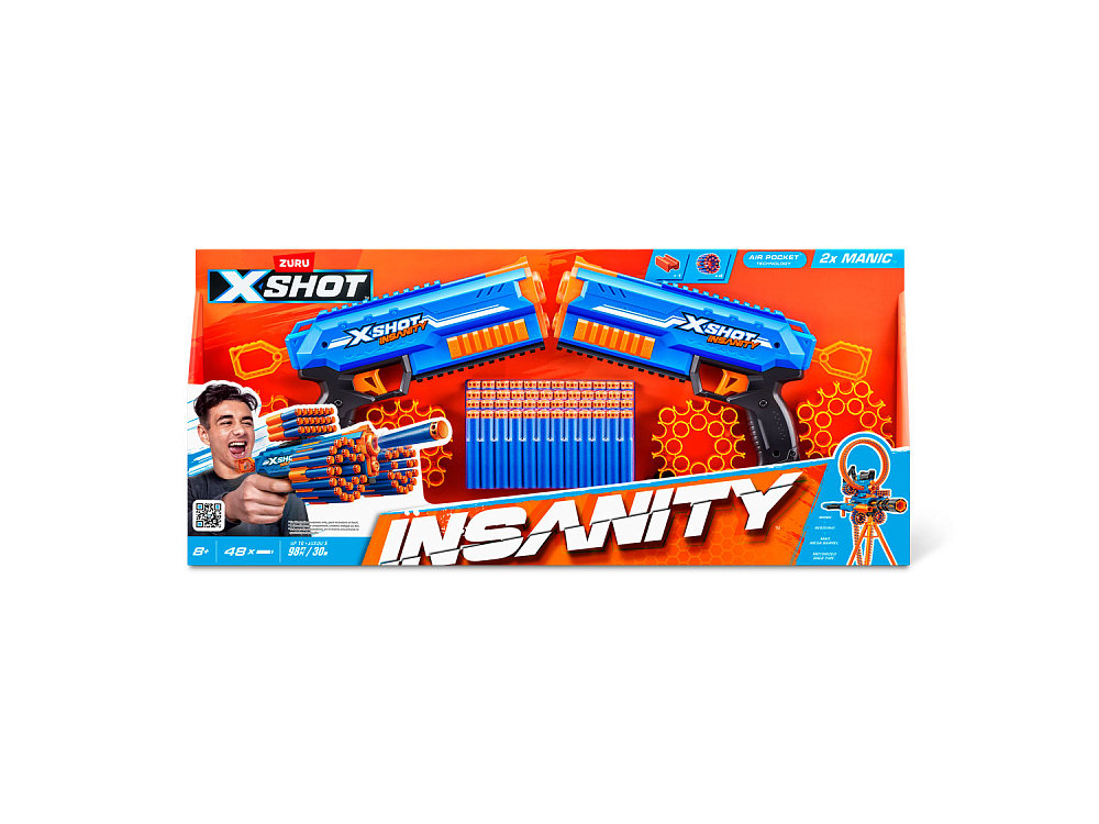 36642 Игровой набор ZURU X-Shot INSANITY: Мэник ДУО (2 бластера, 48 снарядов)
