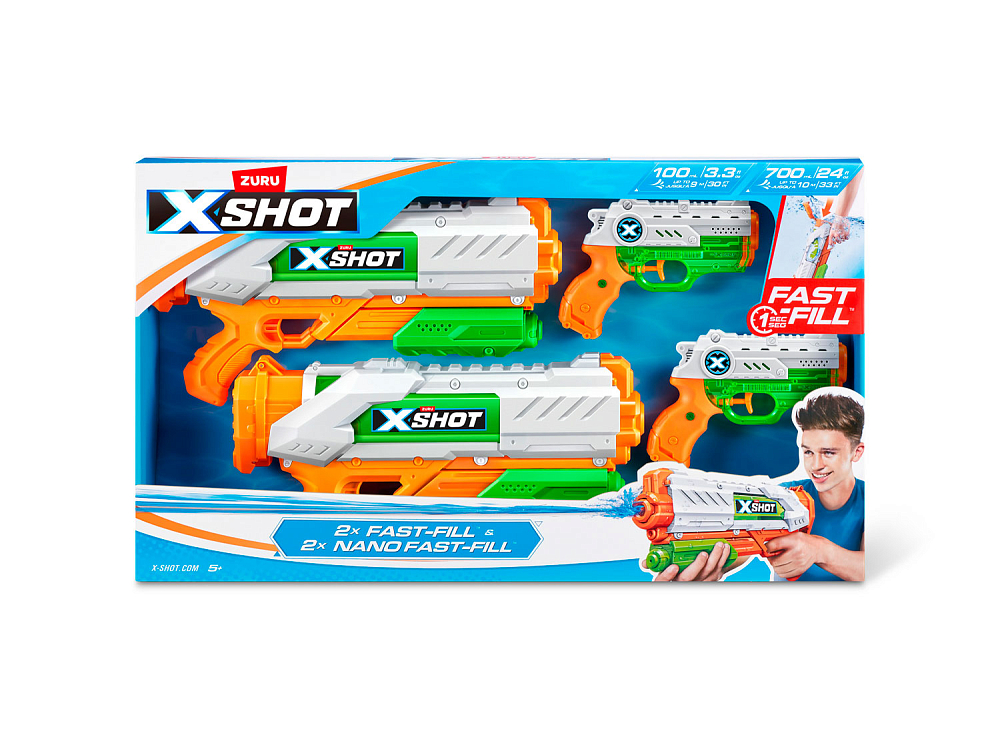 11856 Водный бластер ZURU X-Shot Water «Фаст Филл» 2 шт., и «Нано» 2 шт.