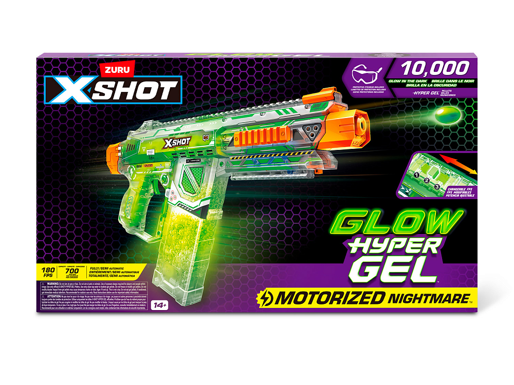36783 Игровой набор ZURU X-Shot HYPERGEL: Найтмер (бластер, 10000 снарядов-гранул, защитные очки)