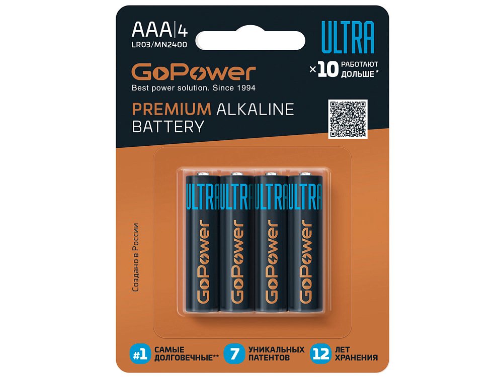 26396 Батарейки GoPower ULTRA LR03 AAA, 4 шт.