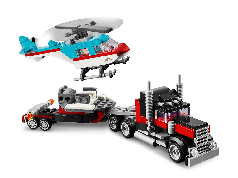 Creator 31146 Конструктор Грузовик-платформа с вертолетом, 3в1