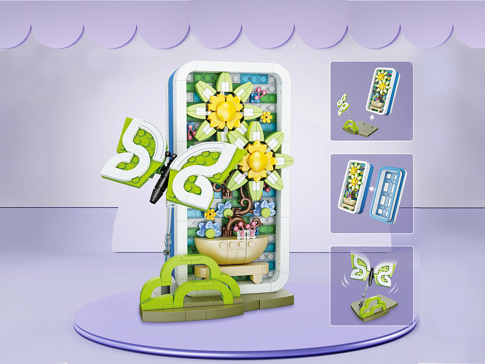 1967_MK Конструктор Бабочка в букете розовых цветов