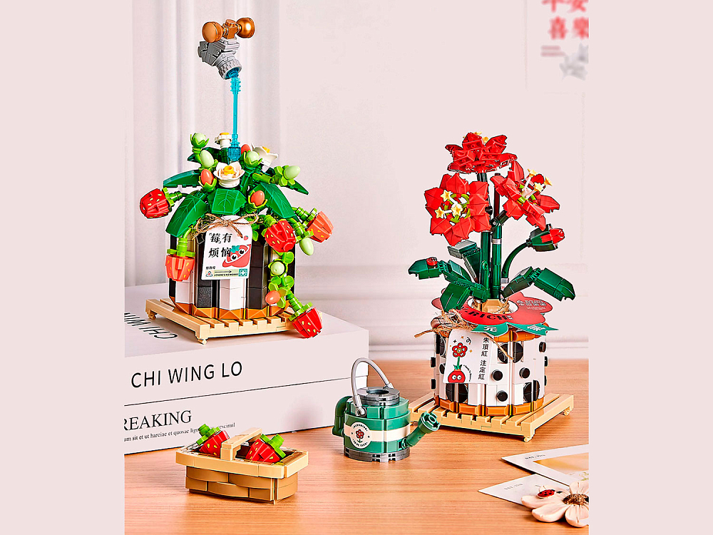 1967_MK Конструктор Бабочка в букете розовых цветов