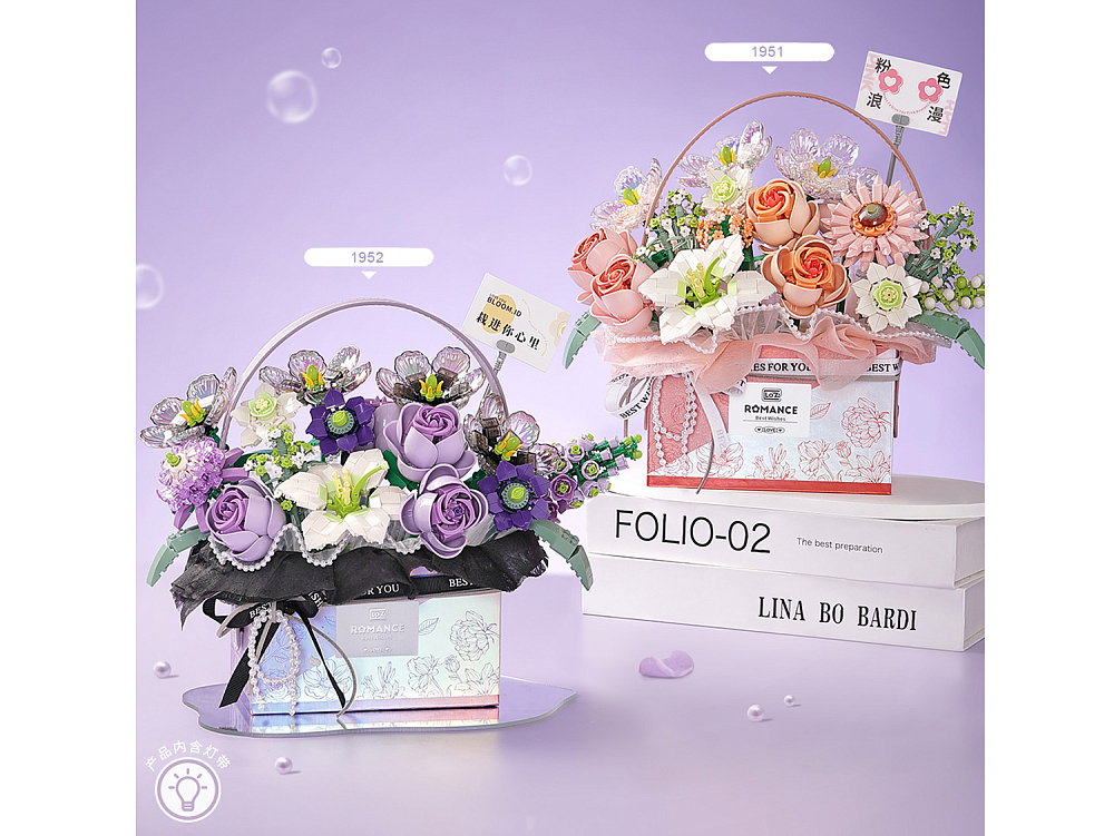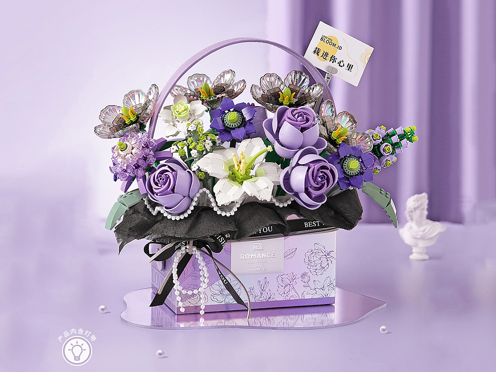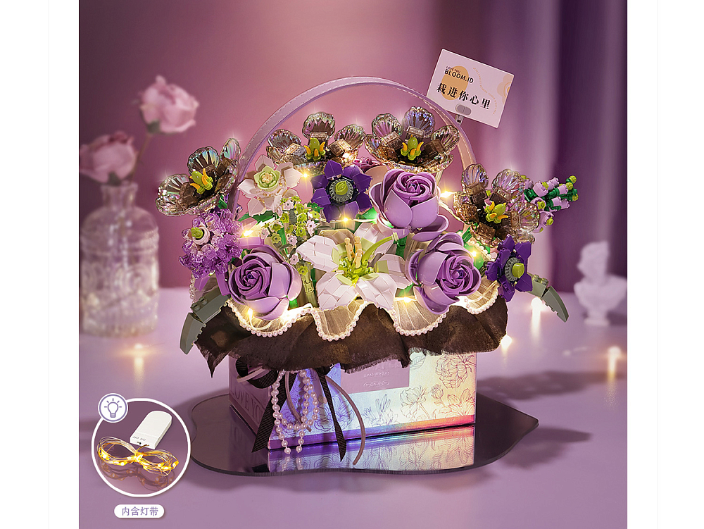 1952_MK Конструктор Фиолетовый букет в корзинке