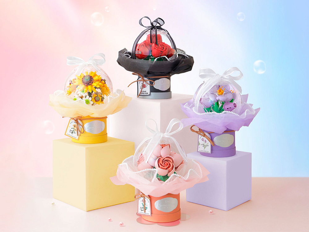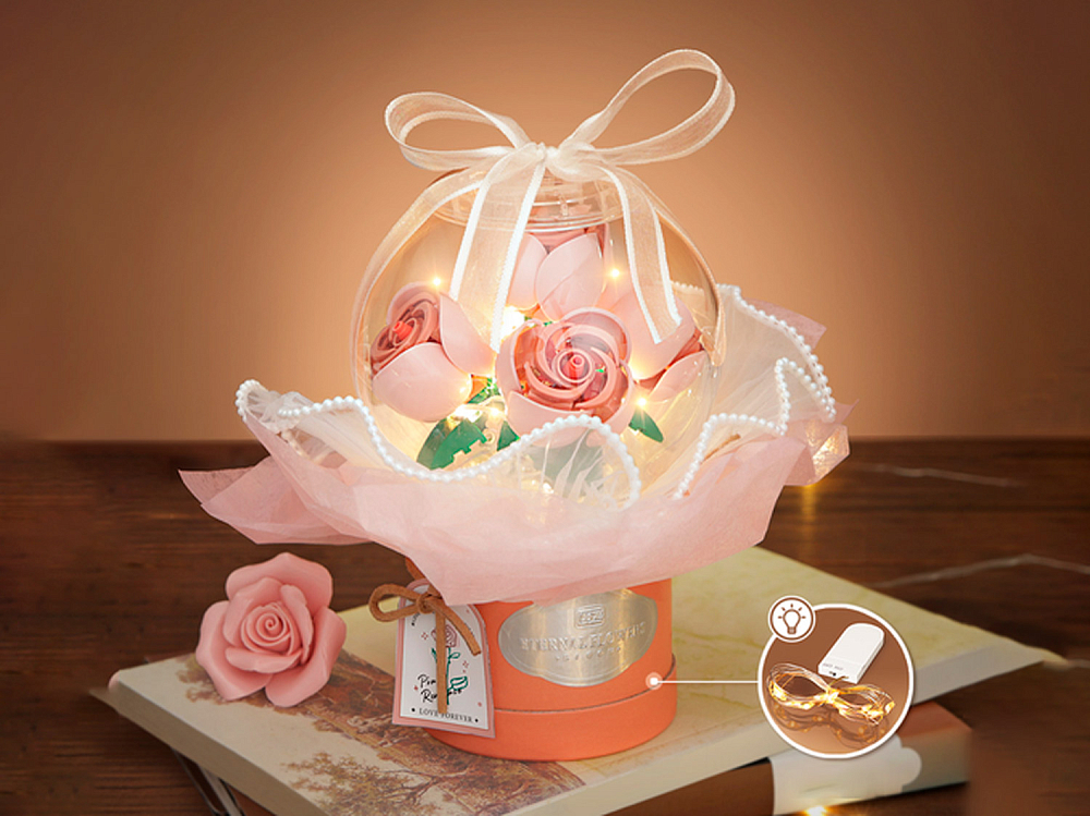1967_MK Конструктор Бабочка в букете розовых цветов