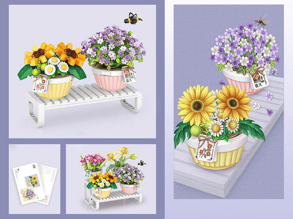 1967_MK Конструктор Бабочка в букете розовых цветов