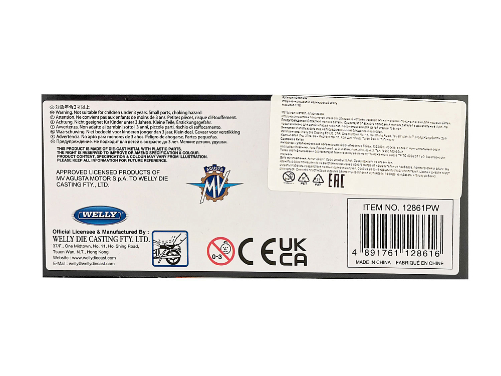 12861PW Игрушечный мотоцикл Welly MV Agusta F3RR