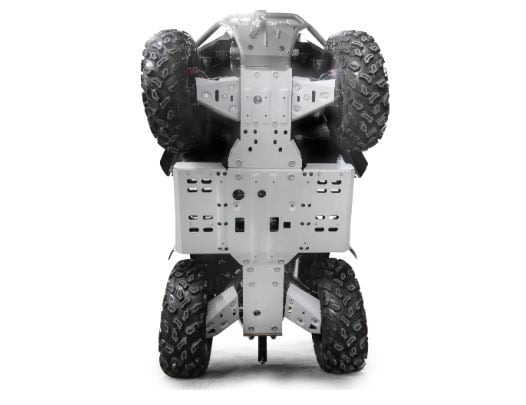 Алюминий 4 мм, лазерная резка, глубокий штамп, порошковая окраска. Установка в штатные места, скрытый крепеж. Защита порогов и отверстия для удаления грязи. Специальные силовые тарельчатые шайбы для крепления.