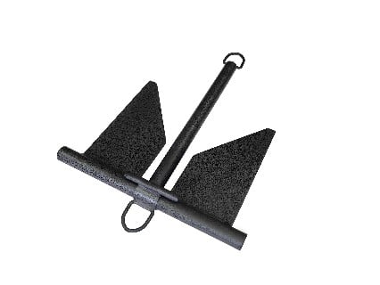 Сталь окрашена антикоррозийной краской, края притуплены. Устроен по шарнирному принципу, но имеет вытянутые вдоль веретена длинные плоские лапы, тонкое шарнирное соединение со штоком на оси вращения и два зацепных кольца, позволяющие высвободить якорь из зацепа. Имеет отличную держащую способность на песчаных грунтах и на гальке.